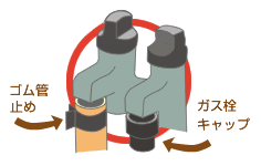 現在、市販されているガス用ゴム管は全て耐久性にすぐれたガスソフトコード(白色系)になっています。